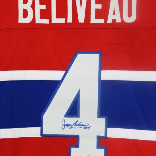 Jean Beliveau Montreal Canadiens Signed Autographed Red #4 Custom Jersey Global COA – SIGNATURE BLED