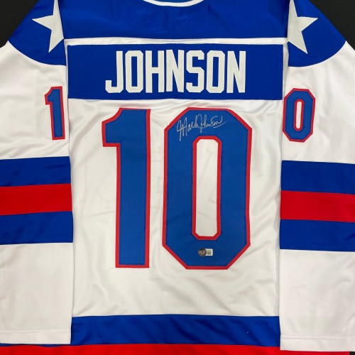 PRE-ORDER: Mark Johnson Autographed USA White Olympic-Style Jersey w/ 80 Gold Inscription
